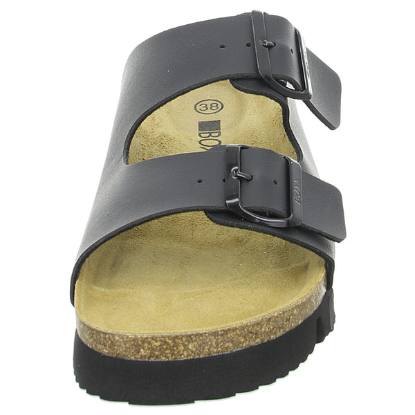 Das Obermaterial besteht aus hochwertigem schwarzem glattem Kunstleder.