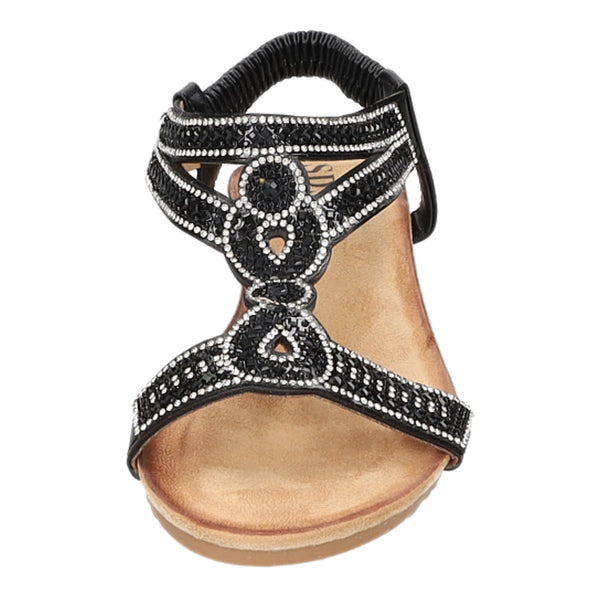 Als modisches Highlight ist der Schuh üppig mit Strass Steinen besetzt.