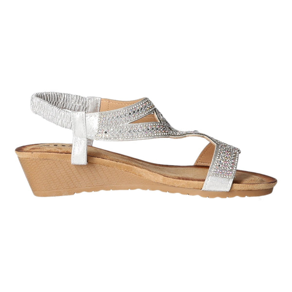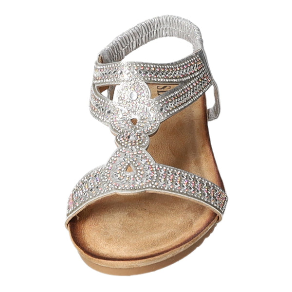Als modisches Highlight ist der Schuh üppig mit Strass Steinen besetzt.