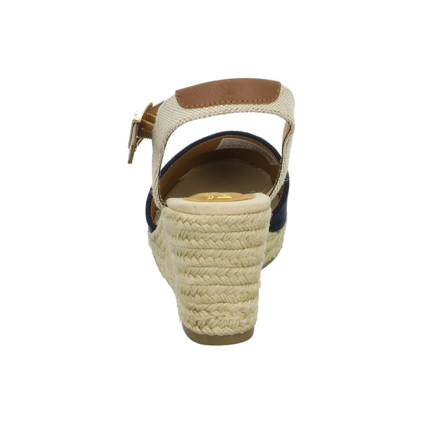 Der Schuh ist mit einer Keilsohle ausgestattet .
