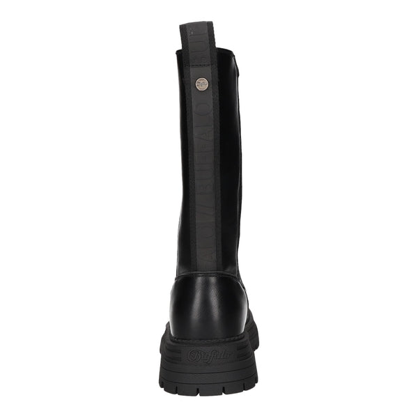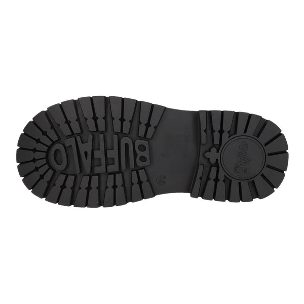Die auffälligen Plateausohle mit Blockabsatz wurde aus robustem Kunststoff gefertigt.