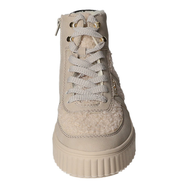 Wunderschönes Obermaterial! Gefertigt aus hell beigem glattem Kunstleder und Textil.