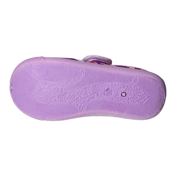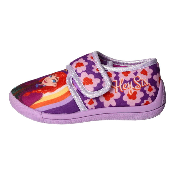 Gefertigt aus wunderschönem, im Grundton lilafarbenem textilem Obermaterial mit großem Anna-und-Elsa-Print.