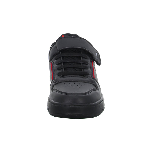 Das Obermaterial besteht aus hochwertigem schwarzem glattem Kunstleder.