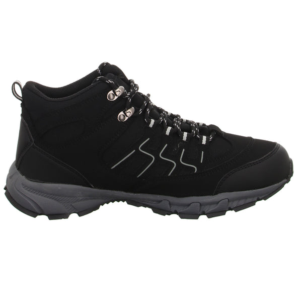 Das Obermaterial besteht aus hochwertigem im Grundton schwarzem textilem Obermaterial.