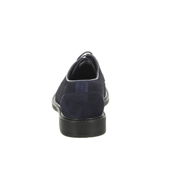 Das Obermaterial besteht aus hochwertigem blauem Veloursleder.