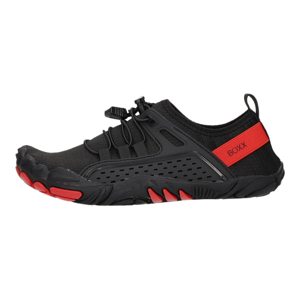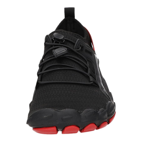 Dieses Obermaterial ist ein modisches Statement! Gefertigt aus schwarz/rotem Textil.