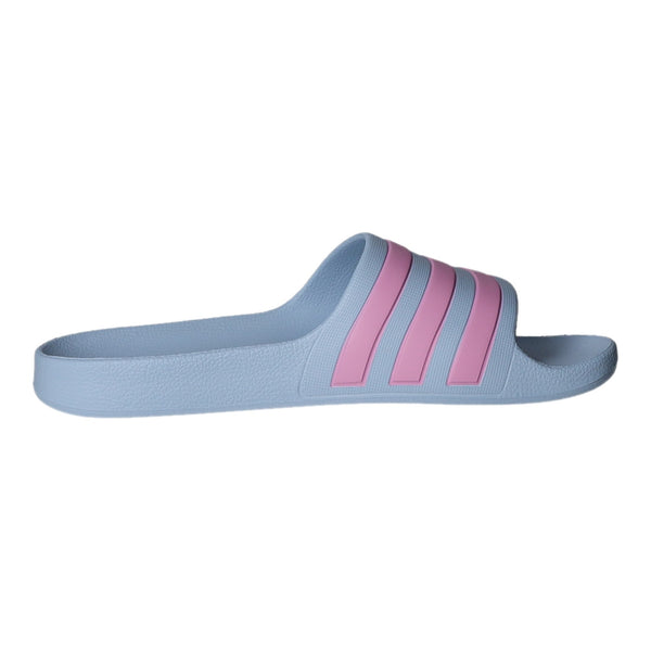 Gefertigt aus hell blauem Synthetik mit pinken Streifen.
