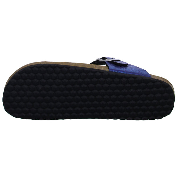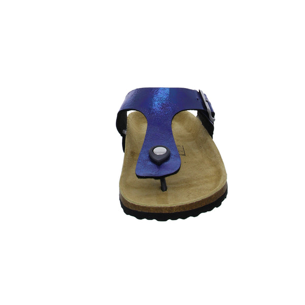 Ein echtes Highlight ist das Obermaterial aus blau metallic farbenem glattem Kunstleder.