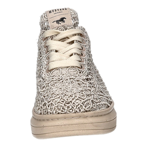 Dieses Obermaterial ist ein echtes Highlight! Gefertigt aus im Grundton beigem Textil im Makramee-Stil.