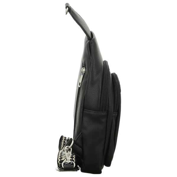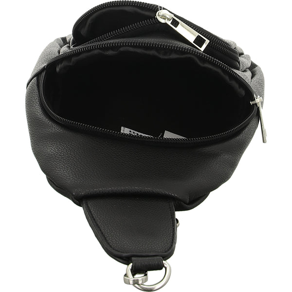 Vorne befinden sich zwei und auf der Rückseite ein Reissverschlussfach.