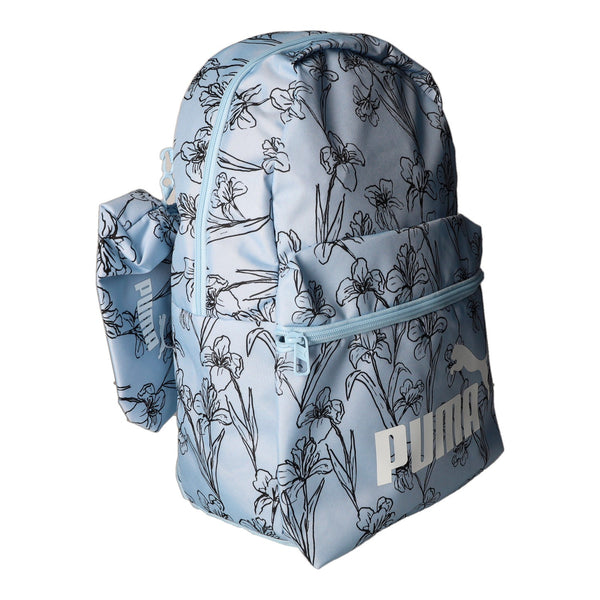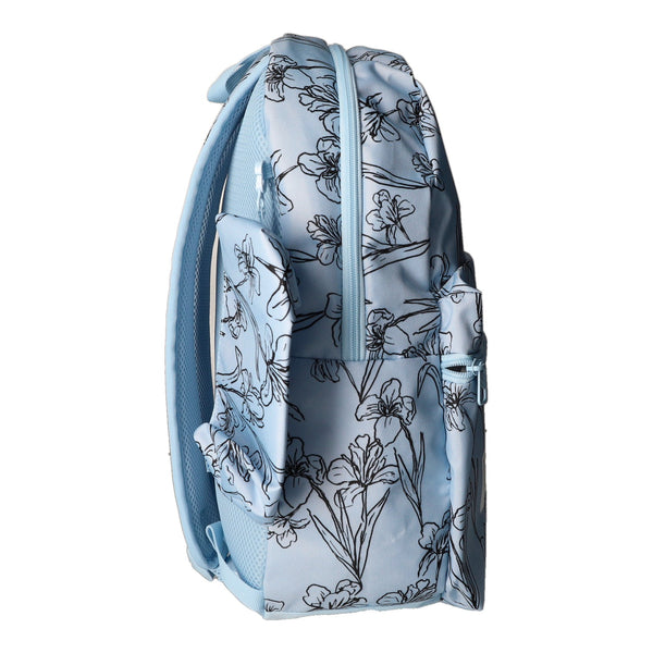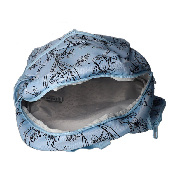 - Obermaterial aus hellblauem Textil mit schwarzen Verzierungen