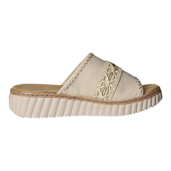 Die modische Laufsohle mit Keilabsatz besteht aus leichtem und dämpfendem Kunststoff.