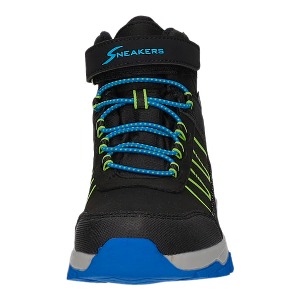 Das Obermaterial besteht aus weichem im Grundton schwarzem Textil und Synthetik.