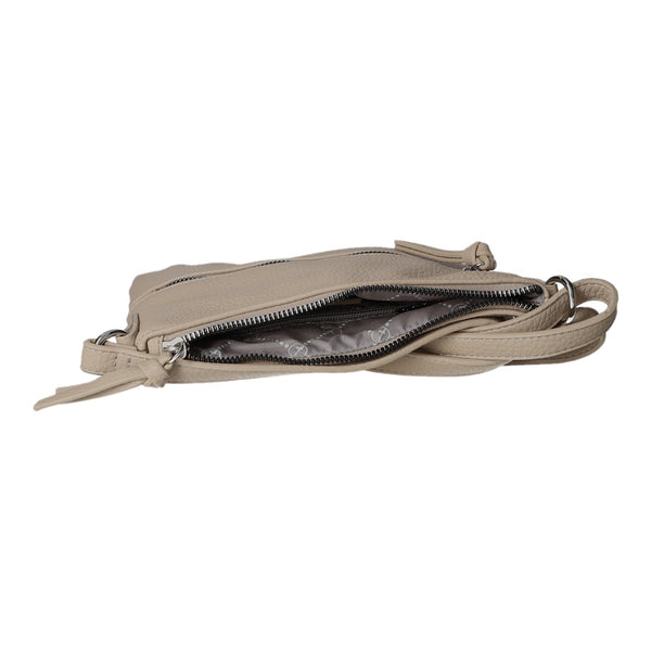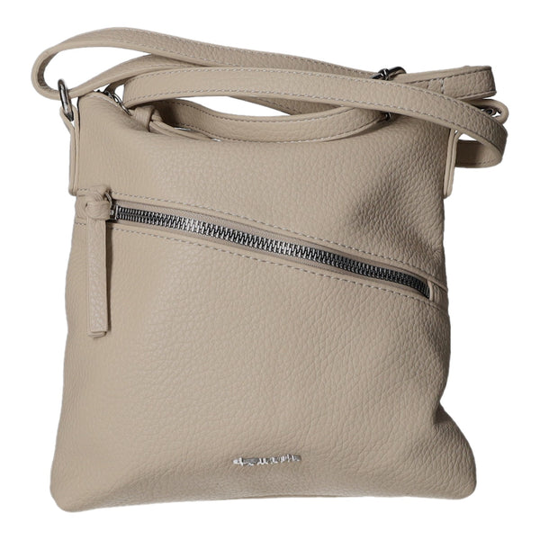 - Vorderseite: schräg zulaufendes Reißverschlussfach