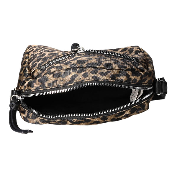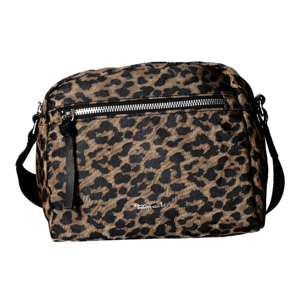 - Obermaterial aus braun/schwarzem Textil in Leo-Optik