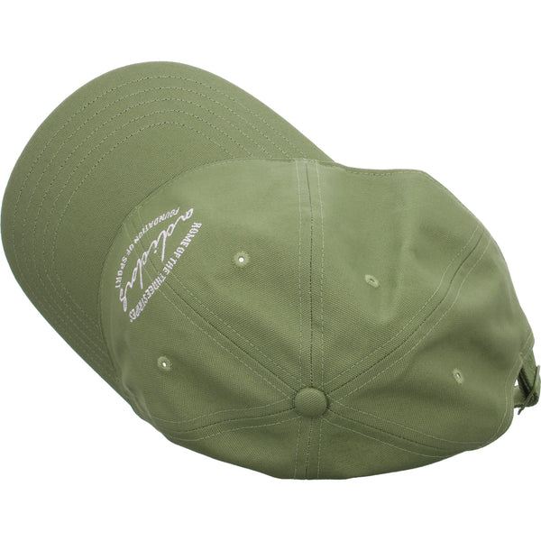 Gefertigt aus grünem Textil mit weißem Schriftzug.