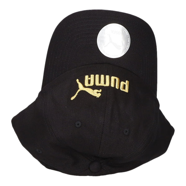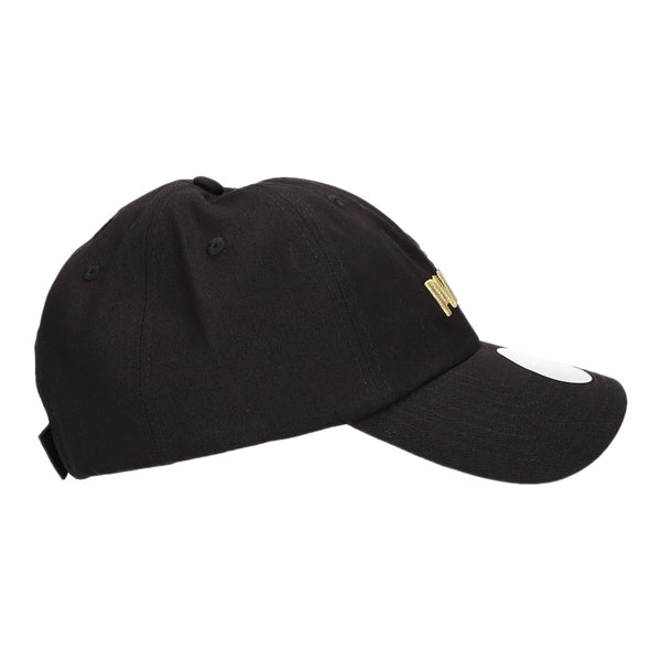Gefertigt aus schwarzem Textil mit goldenem Logo.