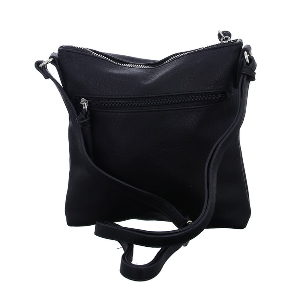 - Vorne: ein schräg zulaufendes Reißverschlussfach