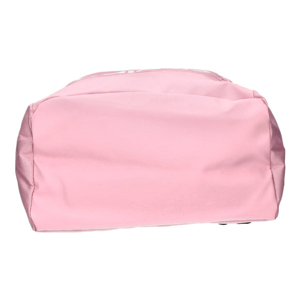 Gefertigt aus pinkem Textil mit weißem Logo.