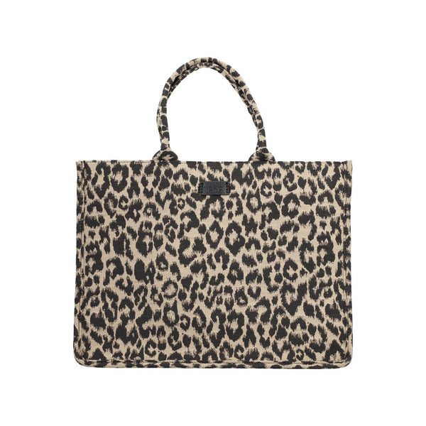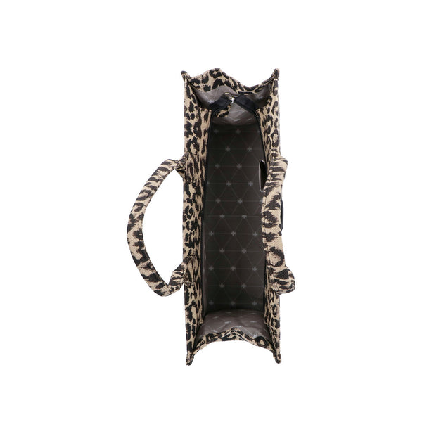 - Obermaterial aus beige/schwarzem Textil in Leo-Optik