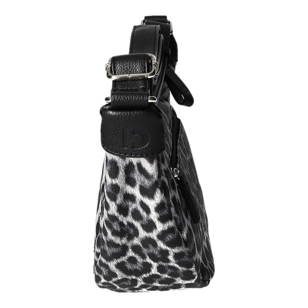 - Obermaterial aus schwarzem Kunstleder mit angesagtem Leo-Print
