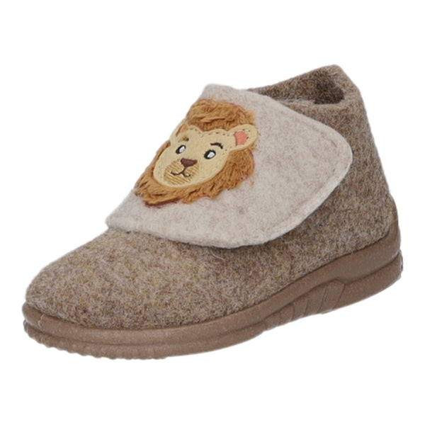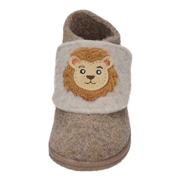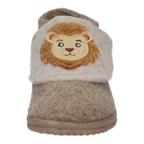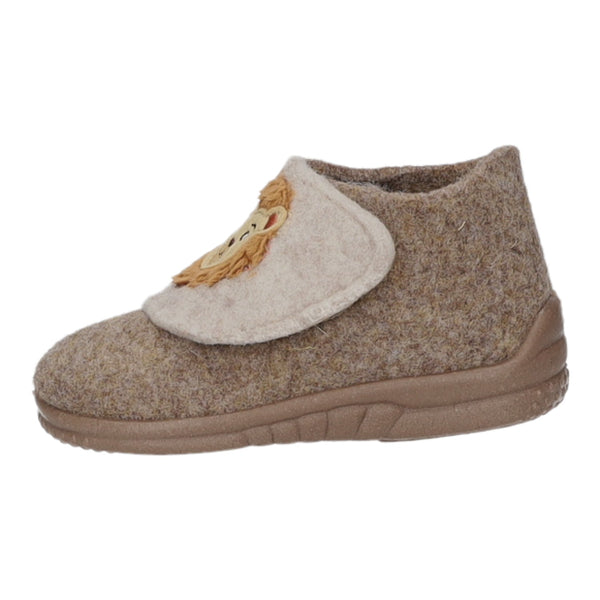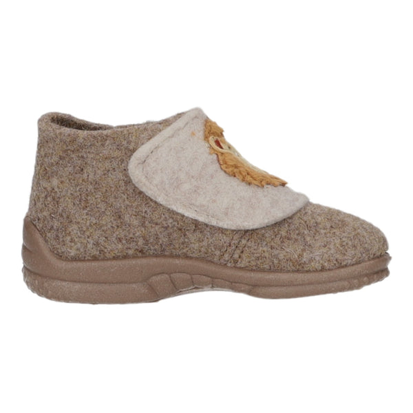 Das Obermaterial, das Innenfutter und die Decksohle bestehen aus braunem Filz.