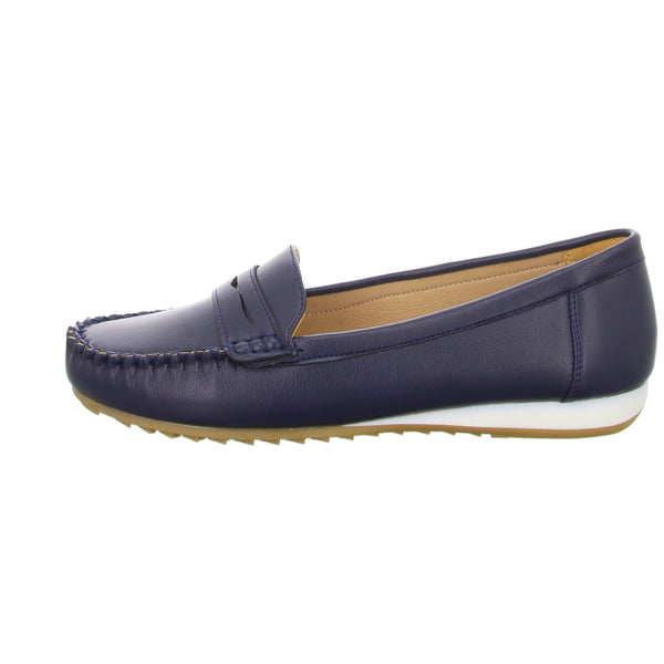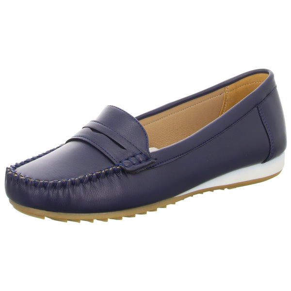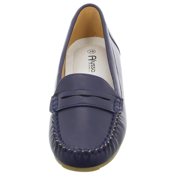 Das Obermaterials ist aus hochwertigem, dunkelblauem glattem Kunstleder gefertigt.