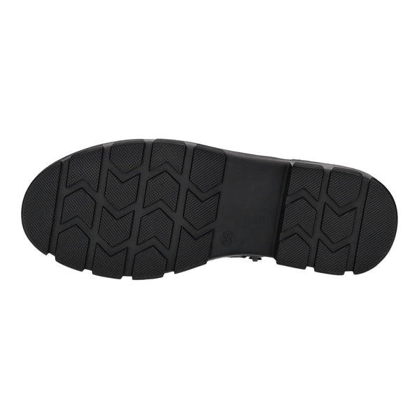Das Futtermaterial besteht aus einem kurzen Kunstfell und die Decksohle aus Textil.