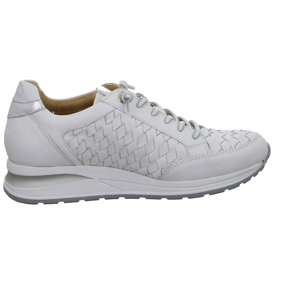 Das Obermaterial besteht aus hochwertigem weißem glattem Leder.