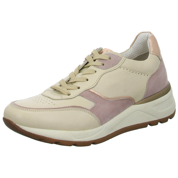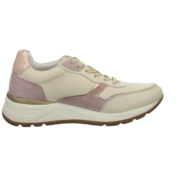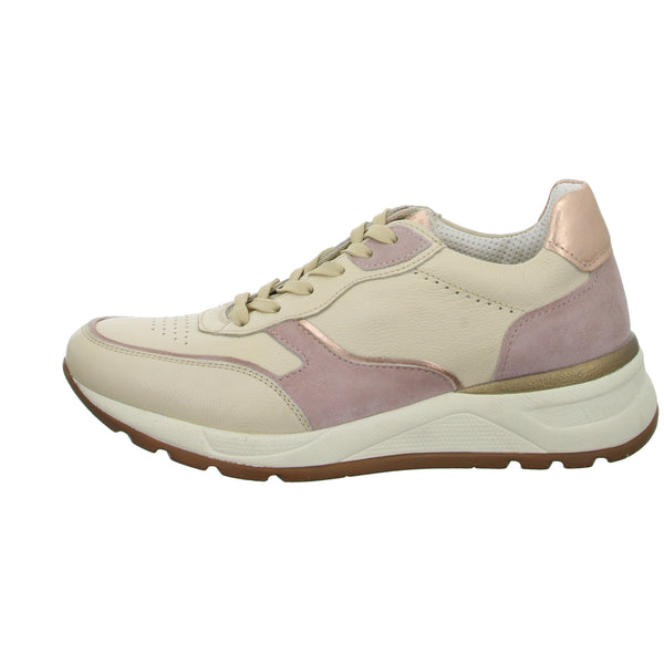 Das Obermaterial besteht aus hochwertigem rot/beigem glattem Leder.