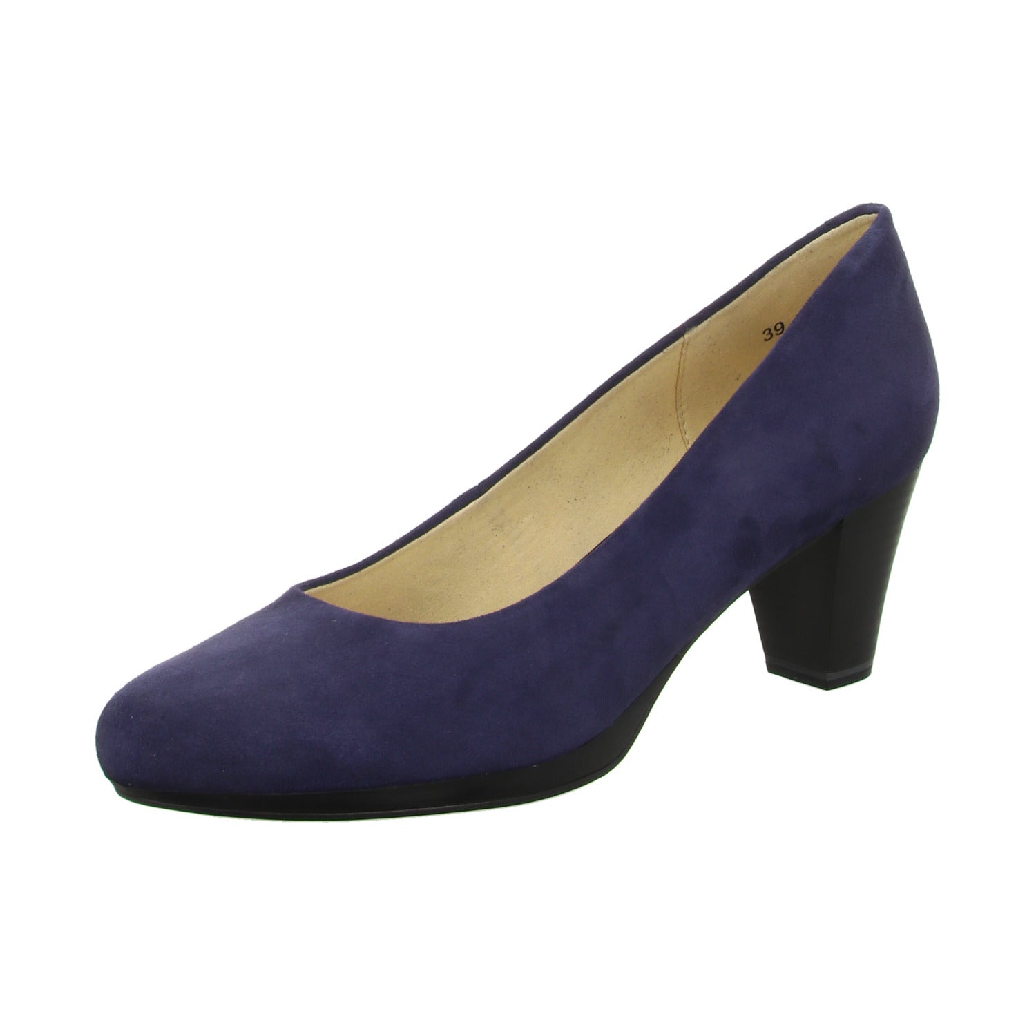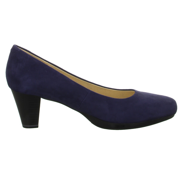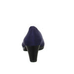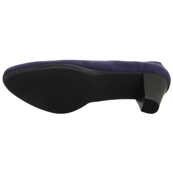Einfacher Einstieg in den Schuh.Gefertigt aus rauem blauem Leder.