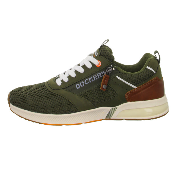 Das Obermaterial besteht aus hochwertigem im Grundton grünem textilem Obermaterial.