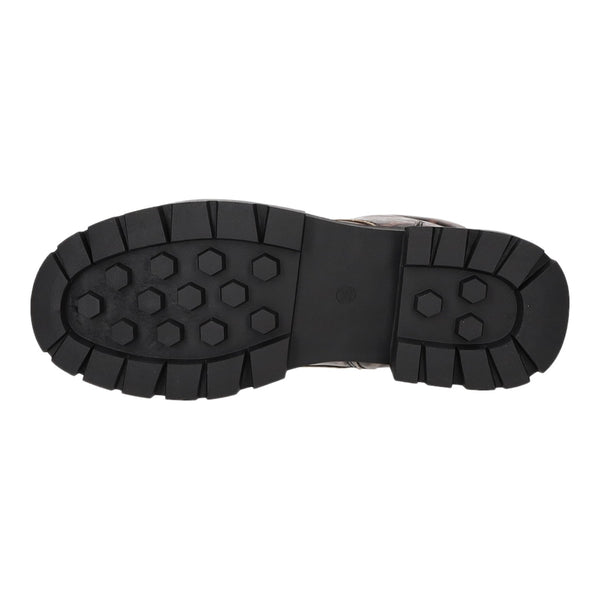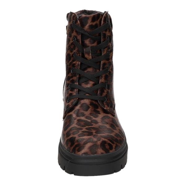 Das Obermaterial besteht aus weichem im Grundton braunem glattem Kunstleder.