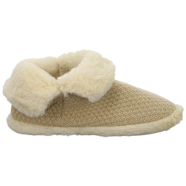 Das Innenfutter und die Decksohle sind aus langem Kunstfell gefertigt und halten die Füße warm.