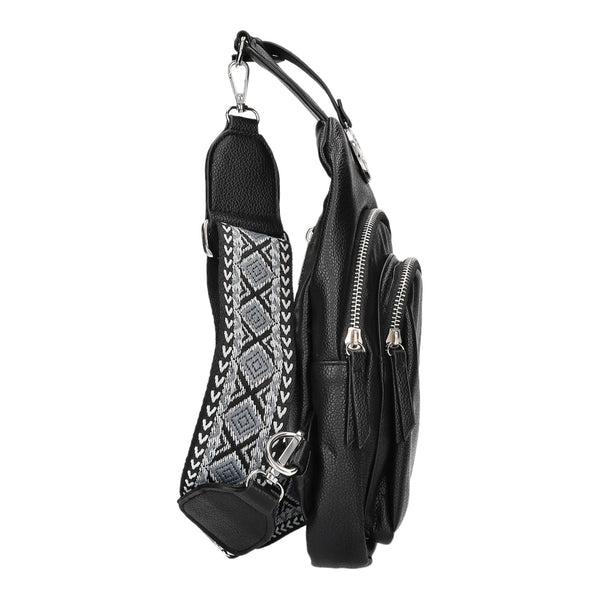 Der Schultergurt kann verstellt und abgenommen werden.