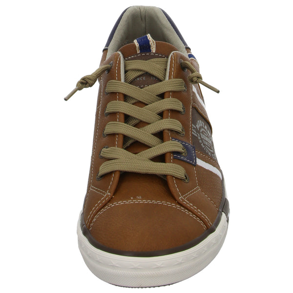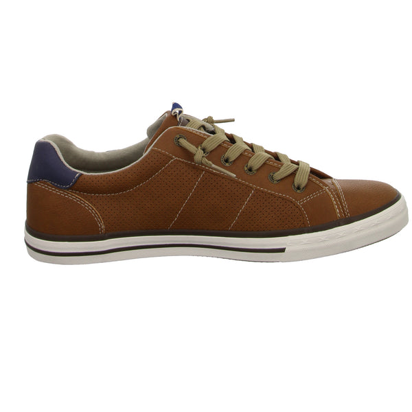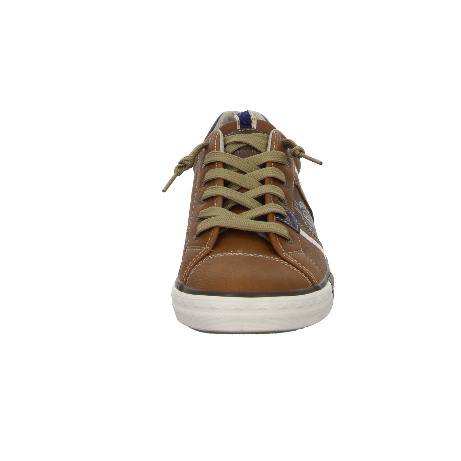 Das Obermaterial besteht aus hochwertigem im Grundton braunem glattem Kunstleder.
