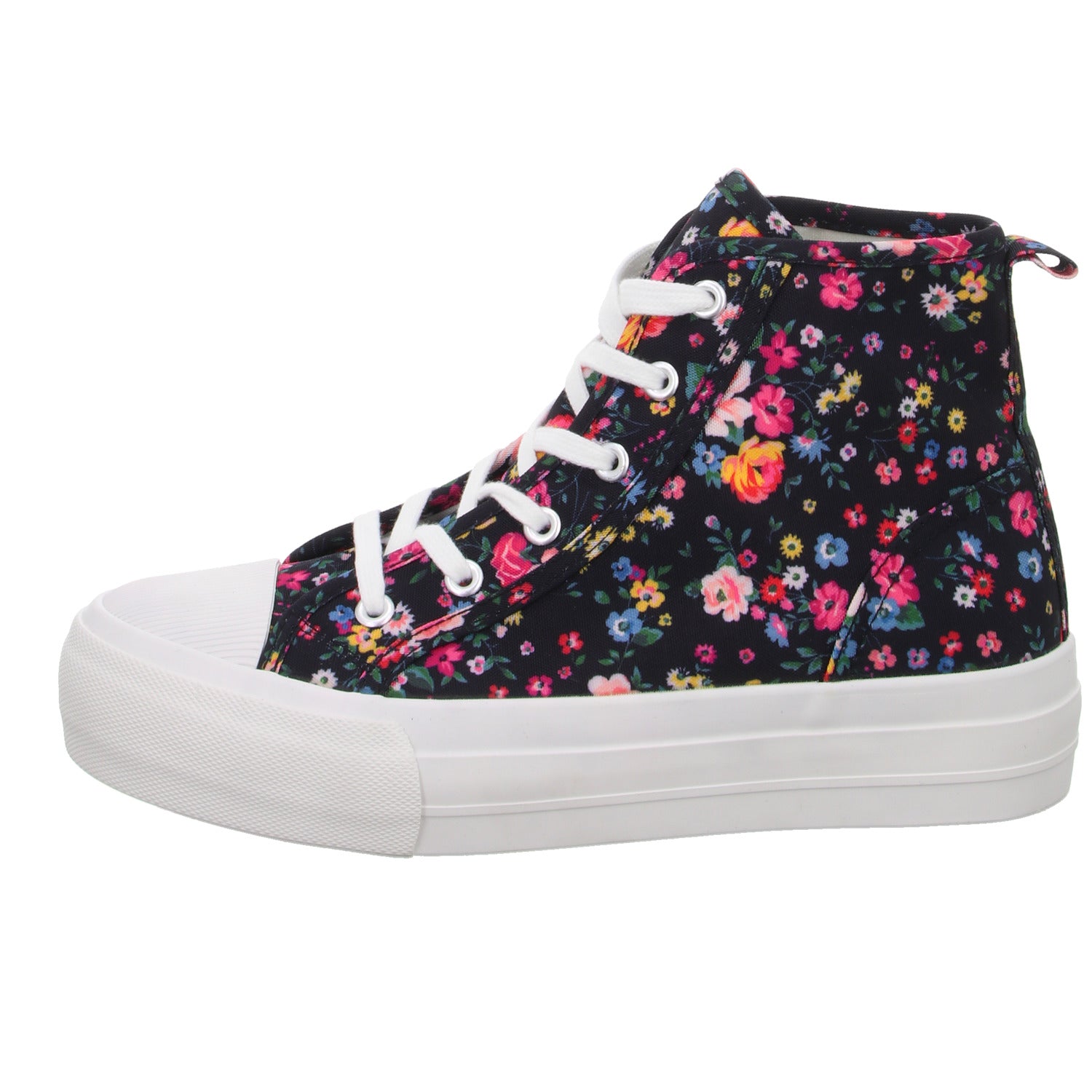 Der Schuh ist mit einer üppigen Blumenverzierung ausgestattet.