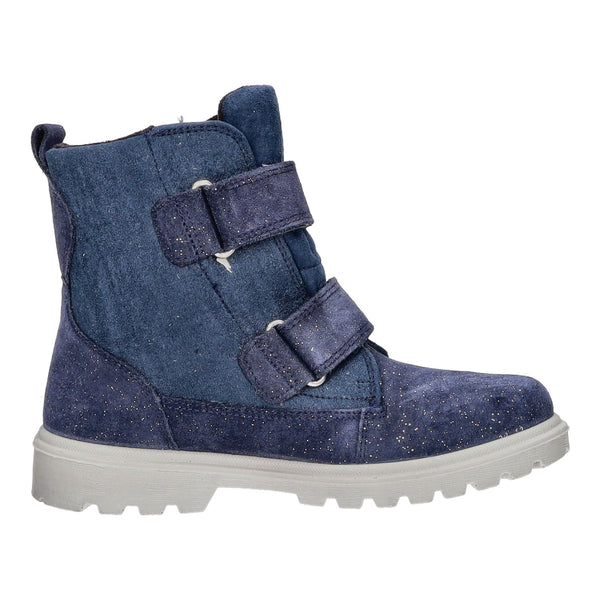 Gefertigt aus hochwertigem, im Grundton blauem Veloursleder und Textil.