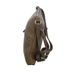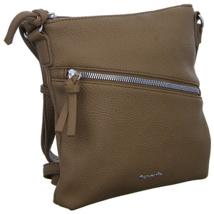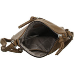 Das Hauptfach hat einen Reissverschluss und Innen befinden sich ein Reissverschluss- und ein Schubfach.