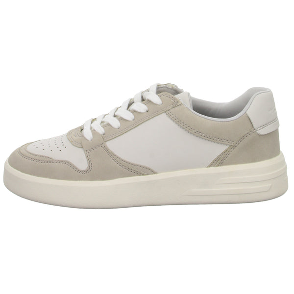 Das Obermaterial besteht aus hochwertigem im Grundton grauem glattem Kunstleder.